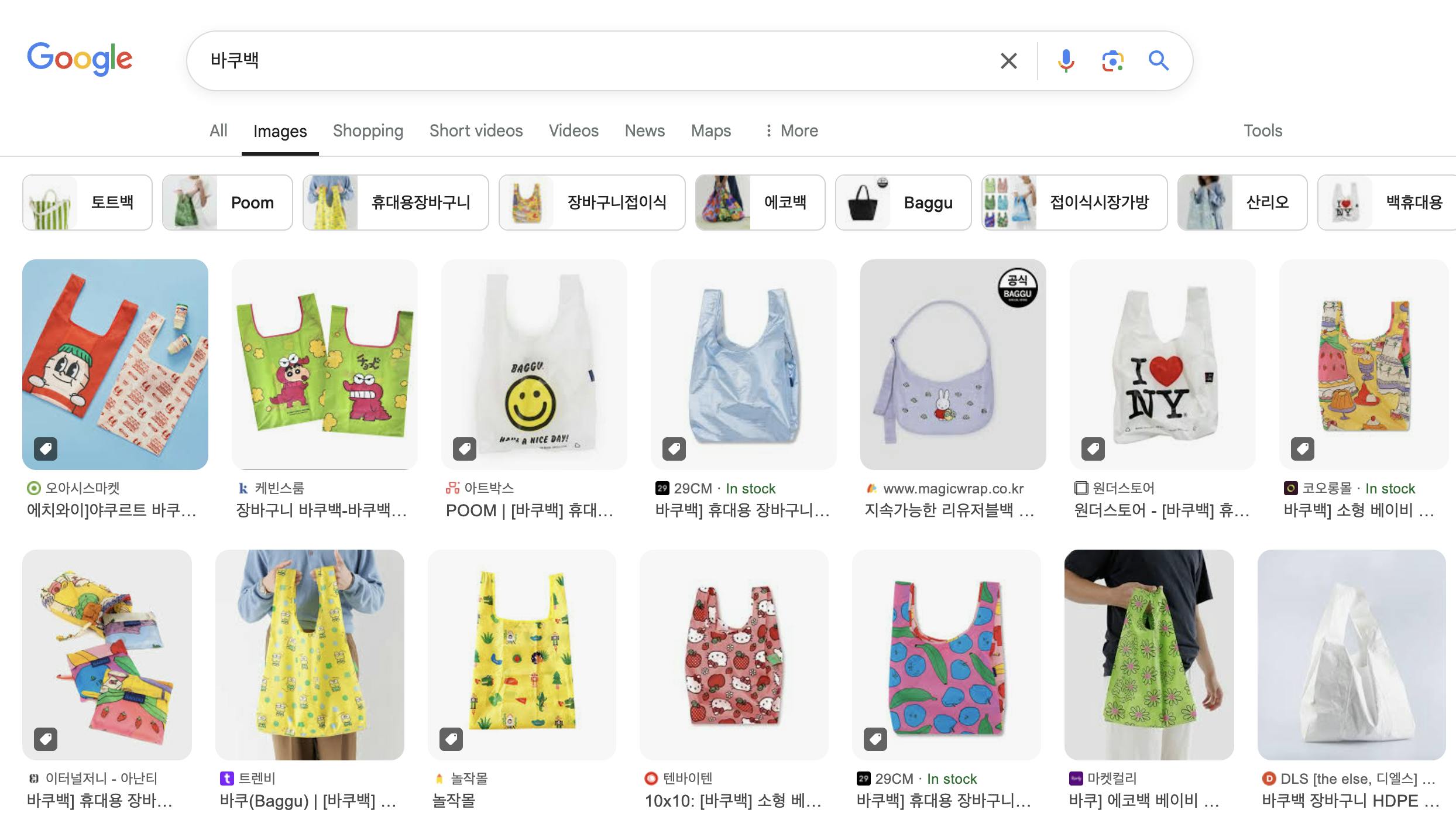 그래서 리유저블백은 탈락. 하지만 이너백으로 사용할 수 있는 것이 과연 리유저블백 뿐일까? 이런 고민을 한 일주일 정도 하고 있을 무렵 함께 달리는 가이드러너 언니가 지나가듯이 "바쿠백"이라고 하시던 말씀이 귀에 꽂혔다. 바쿠백, 접이식 장바구니를 파는 한 브랜드의 이름이었다.