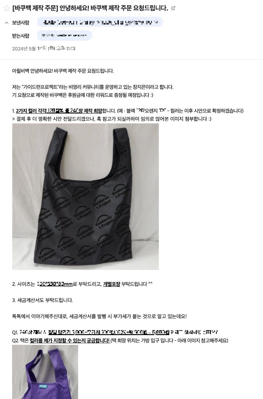 인터넷에 바쿠백 제작을 쳐보니 여러 업체가 나왔다. 최소 수량도 50개 정도여서 부담이 없었다. 업체별 포트폴리오를 살펴본 뒤 한 업체를 통해 주문을 했다.