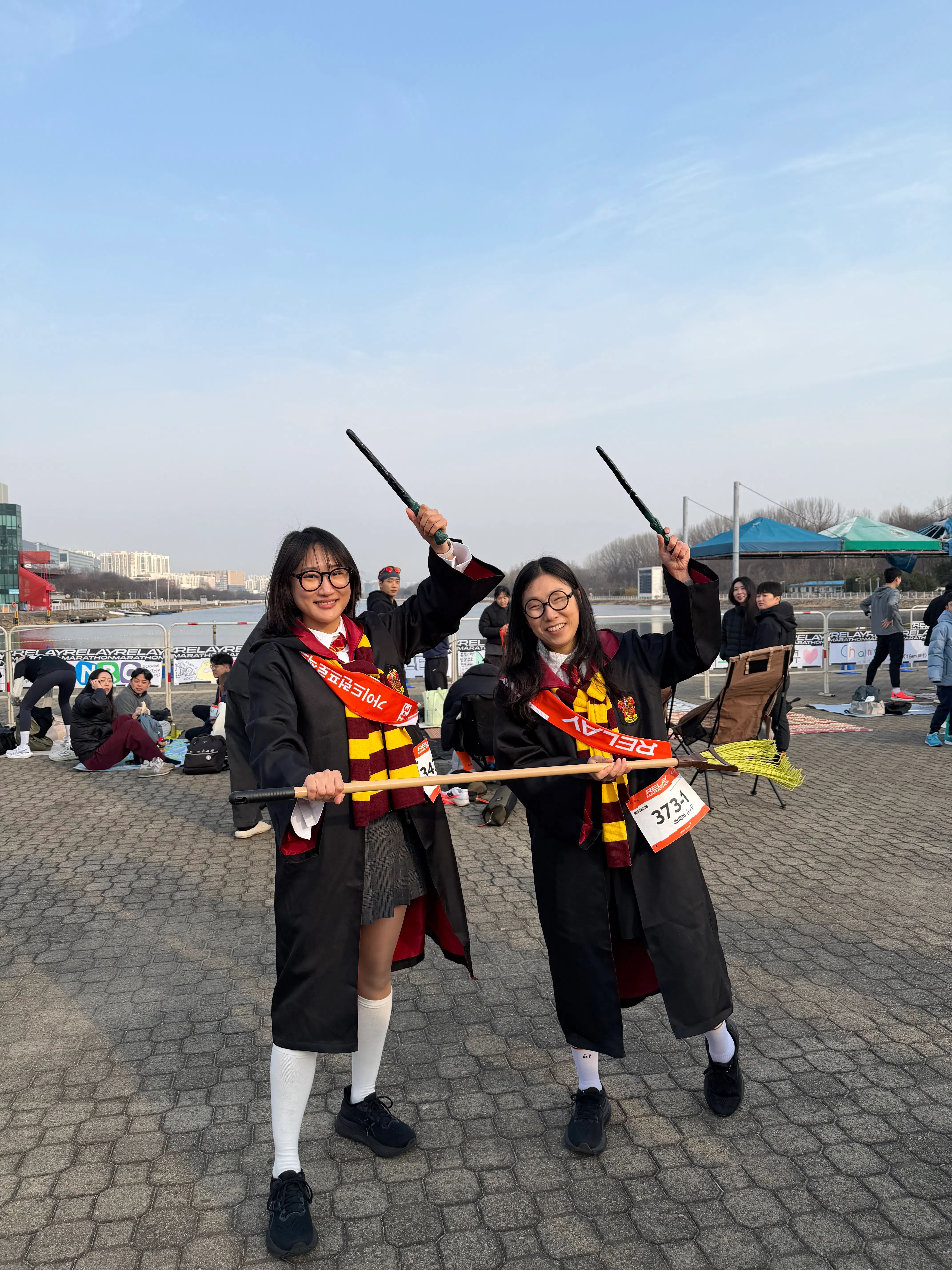 1번 주자: 해리포터 그리핀도르 의상 입고 빗자루 들고 뛴 나라 은지팀