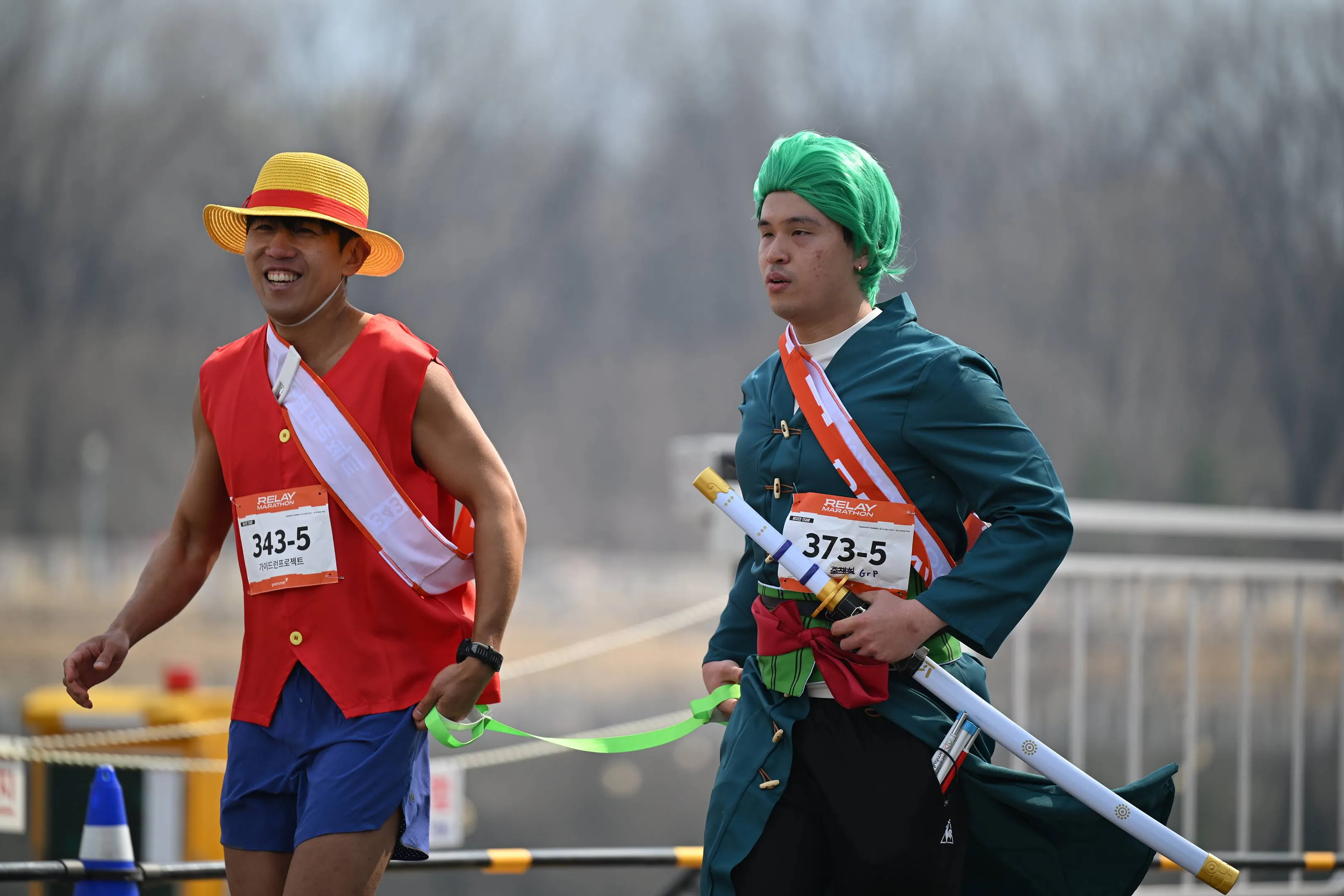 5번 주자: 원피스 등장인물 중 루피(용국), 조로(정완) 분장한 용국 정완팀 (정완님 칼 들고 뛰었는데 엄청 무거웠다는 소문이..)