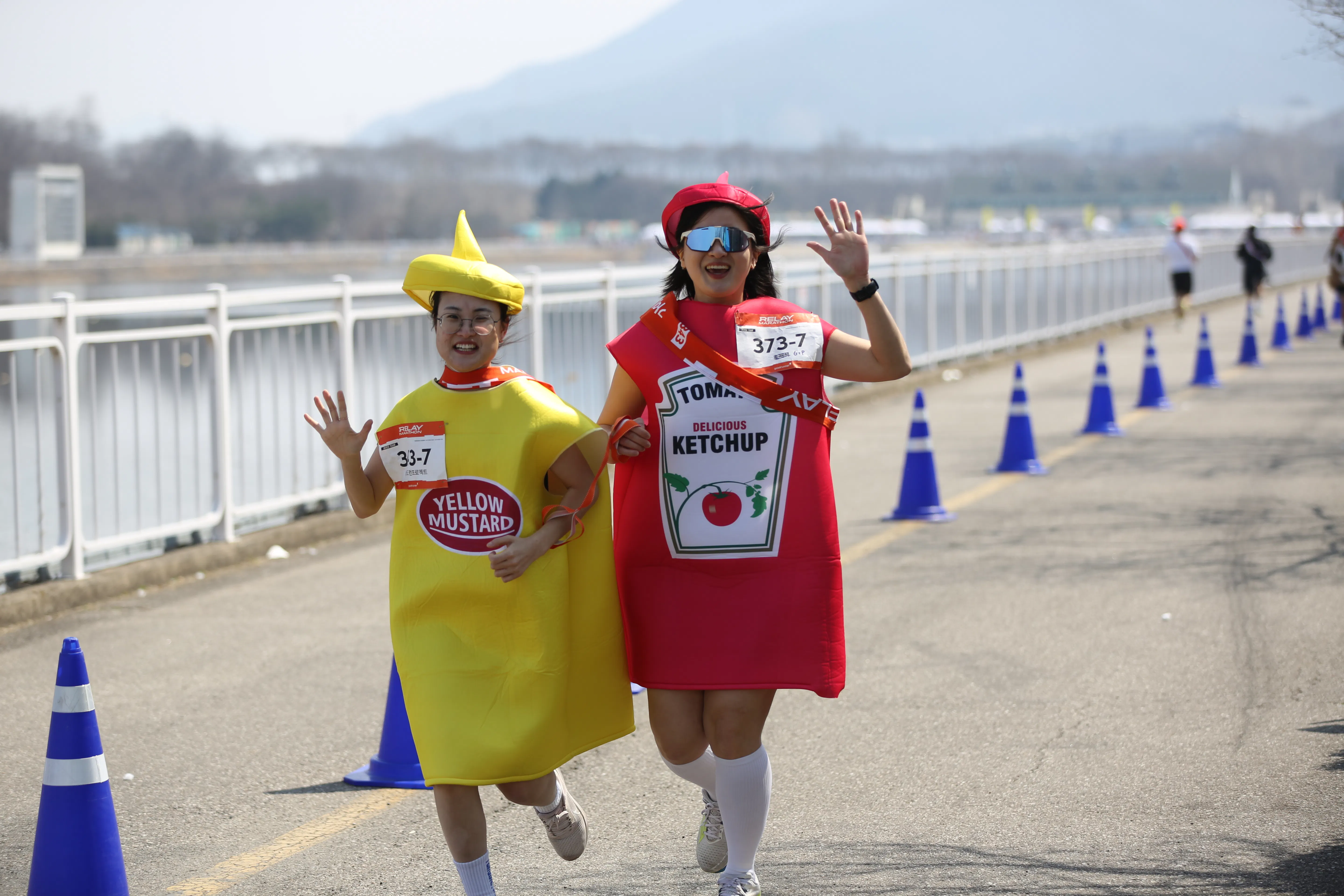 7번 주자: 케챱 마요네즈 옷을 입은 수영 기영팀 (컨셉 맞추려고 뛰기 전에 핫도그 사먹었다는 소문이)