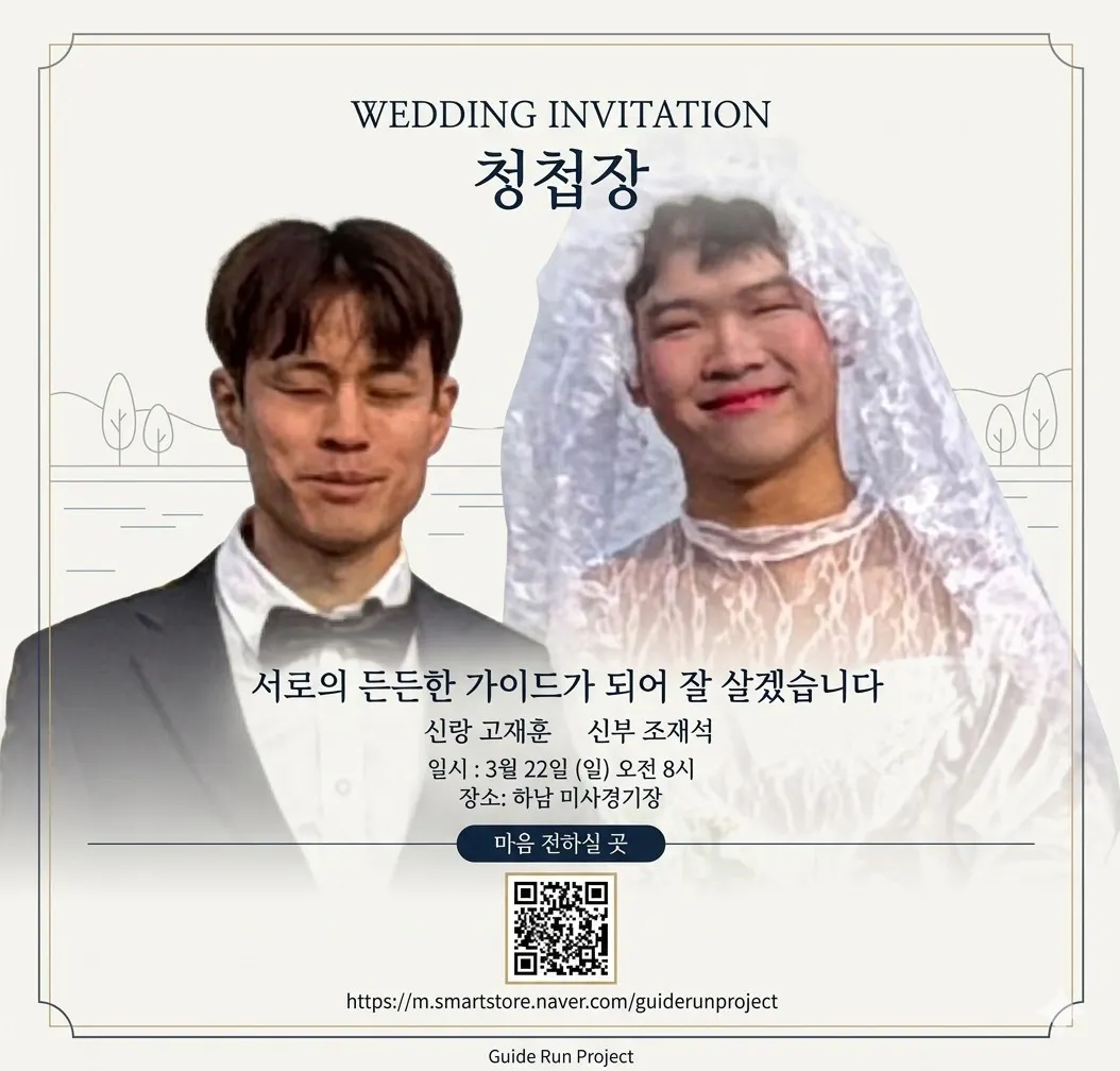 누리님이 신랑신부 분장을 한 재훈 재석팀 사진으로 청첩장을 만들어주시기도 했구요.