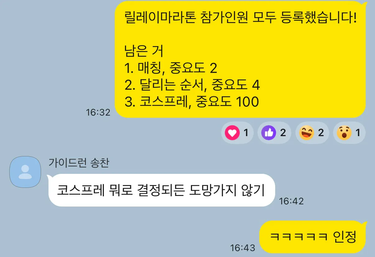 릴레이 팀 꾸리기