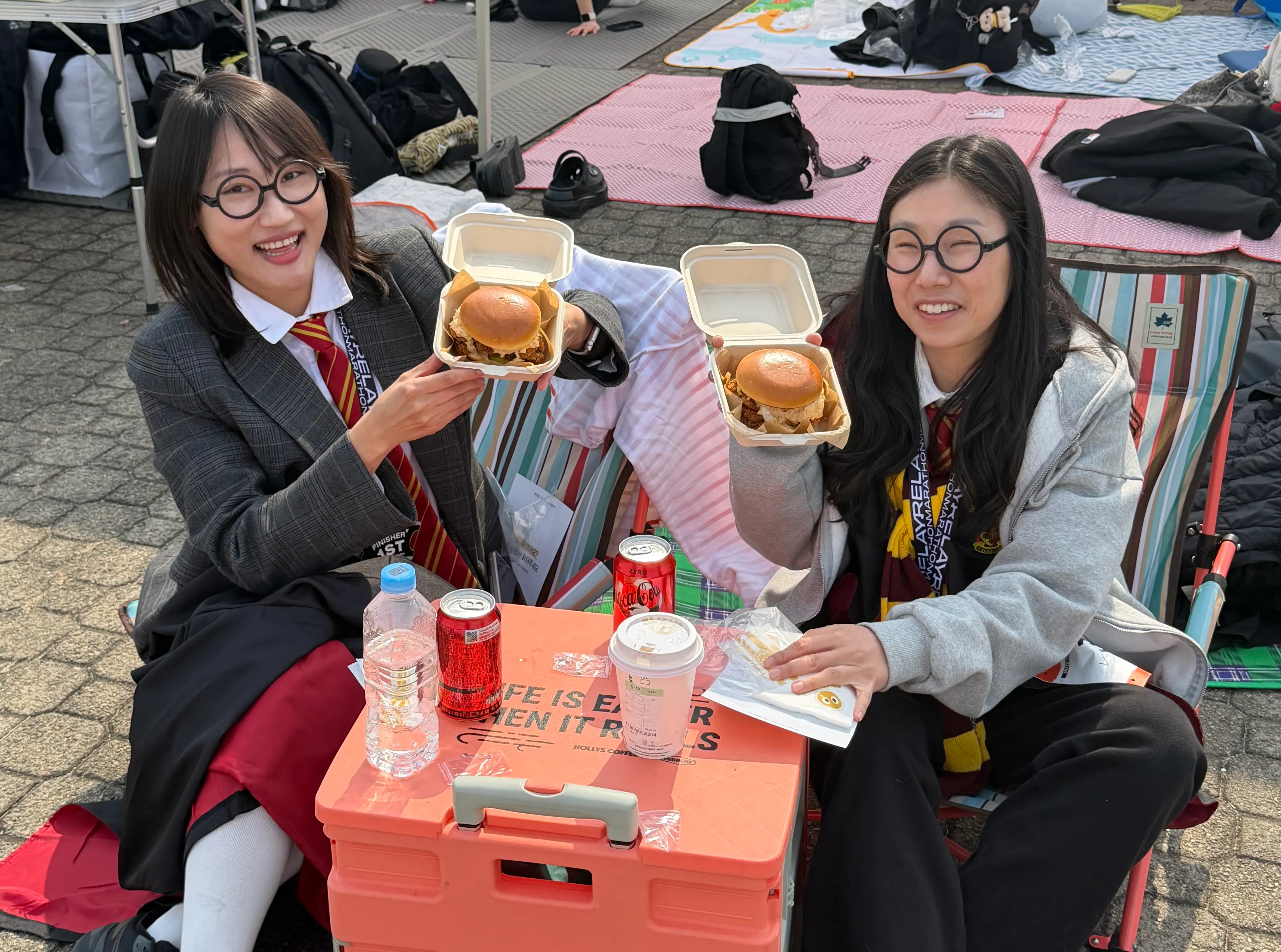 대회 완주로 받은 크라이치즈버거의 치킨버거를 맛있게 먹고 놀았습니다.